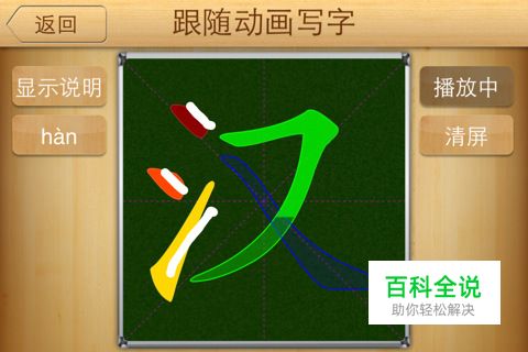 每个汉字利用不同的颜色将每个笔画区别开来,并用动画来演示正确的笔顺