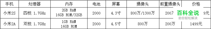 小米2A和小米2S同时上市出售,售价分别为1499元和1999元。到底小米2a和2s有什么区别呢? (1)处理器方面 小米2A采用高通骁龙S4 Pro 双核1.7GHz处理器;小米2S采用高通骁龙600 四核1.7GHz 处理器。 (2)外观方面 小米2A则更轻薄,机器整体重量为133克,最薄处为0.95厘米。 (3)拍照方面 都采用200万前置摄像头不变。不同之处,小米2S 16GB版本配800万摄像头;32GB版本配1300万摄像头。小米2A为800万摄像头。 (4)屏幕方面 两者屏幕都为720p IPS屏幕,小米2S配置4.3寸屏幕,342PPI。小米2A的屏幕则扩大至4.5英寸326PPI。 (5)安安兔跑分方面 小米2S为25913分,2A跑分为18841分(小米2代为21219分)。 此外,小米2A具备NFC功能,这是小米2S所没有的。