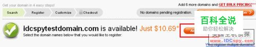 如图显示“available” 说明可以注册。点击Add添加域名