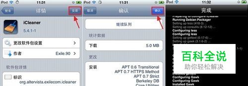 安装iCleaner 由于Bigboss源里就有免费的iCleaner,无需添加源,运行cydia直接搜索iCleaner。 然后进去iCleaner的详细页,点击安装—确认—耐心等待安装完成,返回cydia即可
