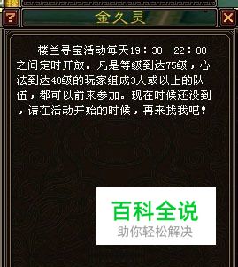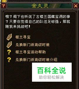 相关NPC: 楼兰金久灵(162,75)