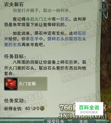 《农夫裂石》就是让侠士们徒手用NPC给的任务道具来劈开石头,取出任务物品交给NPC。任务中提到的石头在哪呢?