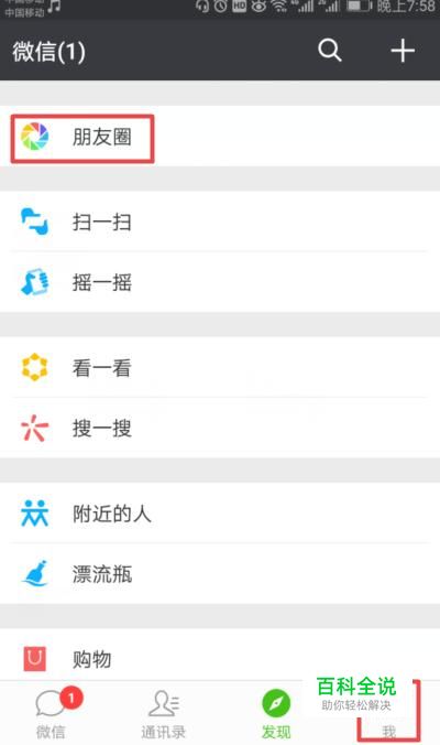 首先,我们点击打开我们手机上面的微信,进入后,我们点击我,然后点击上方的朋友圈;