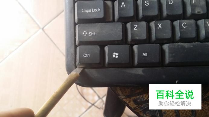 由于笔记本键盘的按键构造比较复杂,自己拆卸风险很大,我今天就只介绍台式机键盘。我们找一个平口螺丝刀(其他类似的东西也行),插到键帽底下,稍一用力,就可以把键帽一边撬起来。