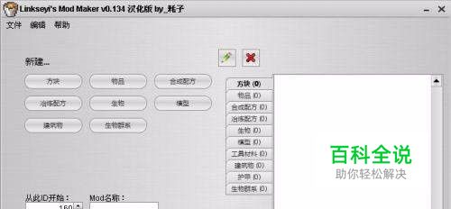 第二,了解主面板:最上面是新建,编辑和帮助,帮助无用,基本是网络链接下面就是几个板块,我就不一一举例了,就是什么方块,物品,生物群系.......等等。板块右面是你做好的项目(一个mod里可以包含很多项目,项目就是方块,物品...........所有板块有的都叫项目。