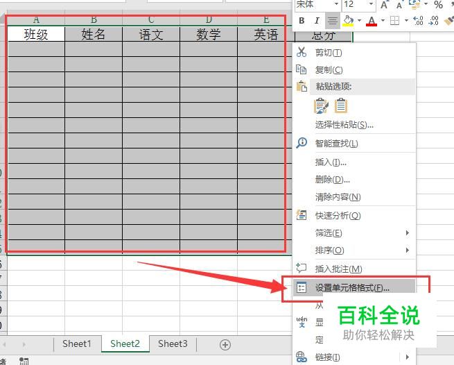选中带有表格的区域,点击鼠标右键,选择“设置单元格格式”,