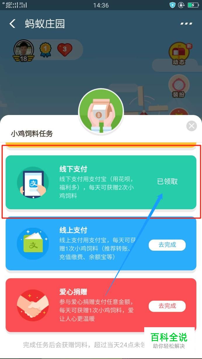 每天使用支付宝线上付款1次,领取1次饲料,每天使用支付宝线上支付领取1次饲料;