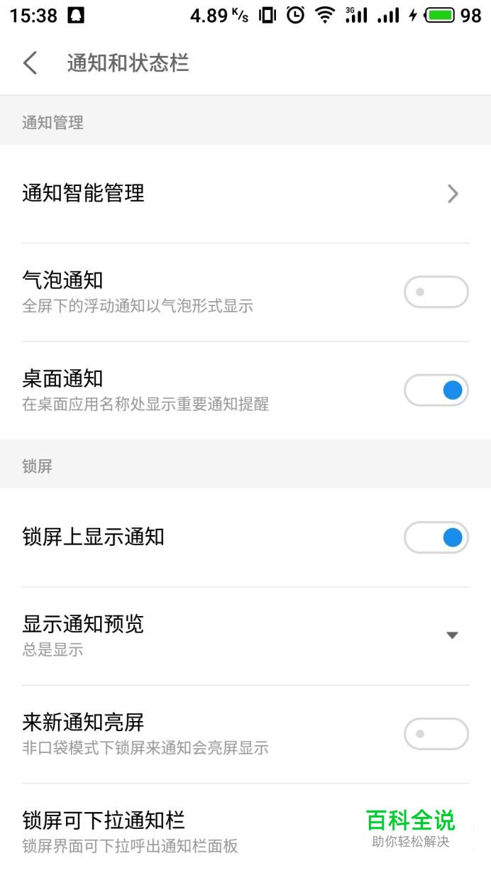 进入通知和状态栏设置界面,点击“通知智能管理”