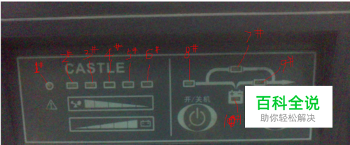 一、首先认清UPS面板各指示灯的编号。