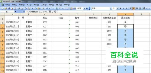 在 是否加班的一栏的单元格上定位,也就是H2。