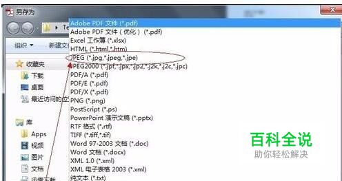 在弹出另存为对话框,选择保存类型为“jpg”,保存即可,如下图;