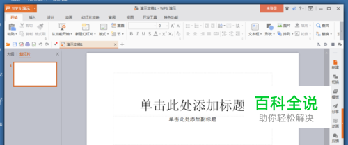 打开WPS PPT,软件会自动新建立一个尺寸。为A4尺寸。现在我们来修改它。
