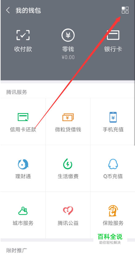 在微信钱包里直接点击右上角的【微信支付中心】图标,如下图所示。