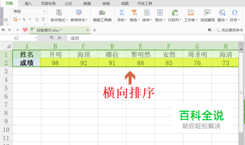 完成Excel横向排序。 Excel横向排序完成,可以修改排序参数达到多条件排序、升降序排序等其它自定义条件排序。