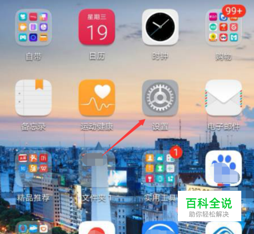 首先解锁手机,来到手机主界面,可通过多种方式,打开设置功能,这里在桌面上找到此图标,点击开始设置。