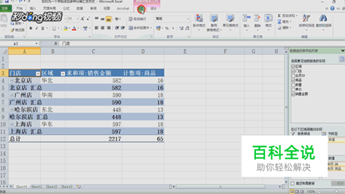 方法二:在右侧数据透视表字段列表中找到门店,左键单击,在下拉菜单中单击选中字段设置