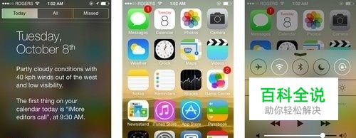 一、下拉通知中心 控制中心 通知中心相比之前有了很大的不同,主要是从之前的单一查看通知信息变得更加全能,我们可以左右切换在今日内容、全部内容、错过内容中查看不同的信息。而控制中心则是此次新增加的内容,我们通过从下至上滑动界面可以呼出控制中心。对于控制中心,我们也可以设定它是否在应用中可以被调用。