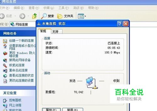 右击电脑桌面上的“网上邻居”图标,在弹出的快捷菜单中选择【属性】菜单项,在打开【网络连接】窗口中右击【本地连接】图标,在弹出的快捷菜单中选择【状态】菜单项,随机打开【本地连接】对话框。