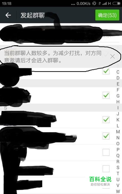 由于担心人数太多,发起群聊超过40人的话就要经过对方同意才可以加入,这样就起不到不打扰别人的目的了。所以我们每次选择39个人发起群聊。