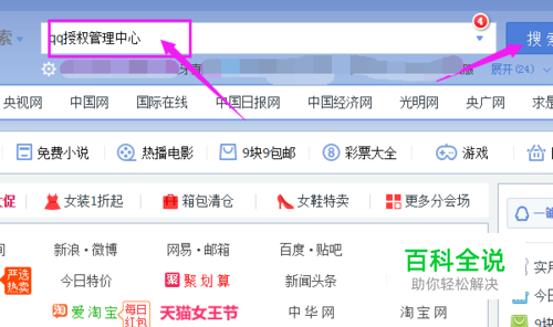 打开浏览器后,输入“QQ授权管理中心”,点击【搜索】。