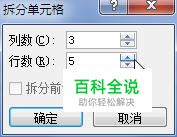 打开“拆分单元格”对话框,分别设置需要拆分成的“列数”和“行数”,单击“确定”按钮完成拆分。