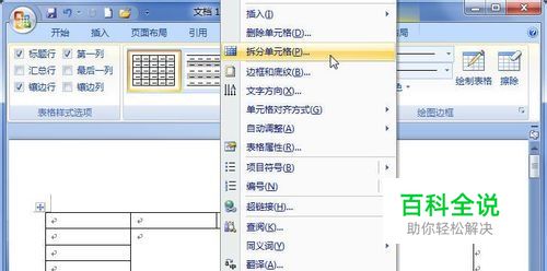 打开Word2007文档,在表格中右键单击需要拆分的单元格。
