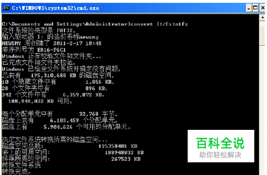 运行以下命令将磁盘格式由fat32 转换成ntfs(此命令不同于格式化,不会丢失原有数据)