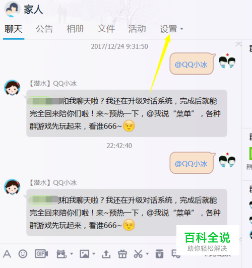 设置马甲前缀需要群主才能设置,打开我们自己群的聊天窗口,点击右上角的设置。