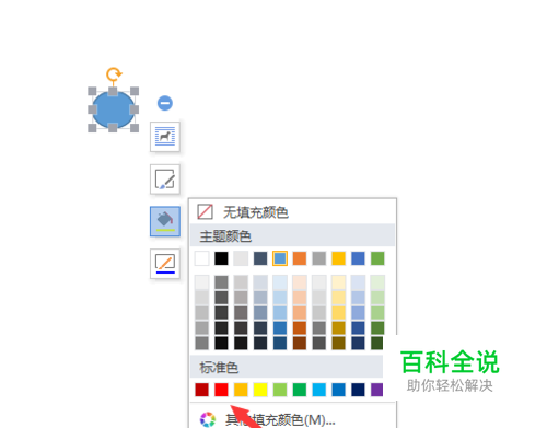 调整箭头所指示的小黄点,可以调整禁止符号的粗细。然后按照前面的给椭圆上色和吊证边框的步骤,把禁止符号的颜色和边框颜色全部变成红色。