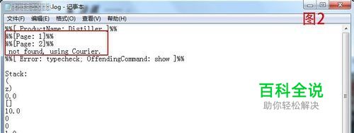 如果您使用了系统字体以外的字体时,Pdf虚拟打印机就会报错提示,为你指出哪页哪页未能转换等等的错误信息,这些信息是在txt文本中呈现的,如图2所示。