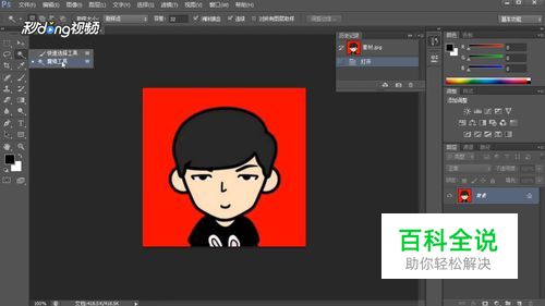 打开素材图片,左键单击左侧工具箱第四个图标“快速选择工具”,在弹出菜单中,左键单击“魔棒工具”。