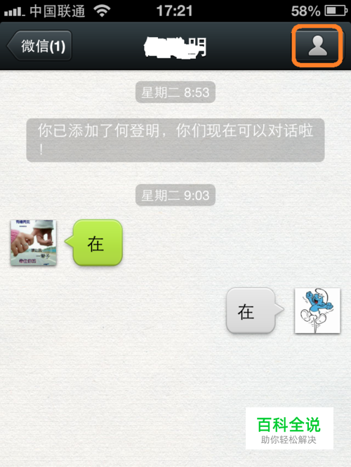 首先打开微信以后,找到想要查找聊天记录的联系人,点击进入聊天对话窗口,然后点击屏幕右上角的联系人图标,如图所示