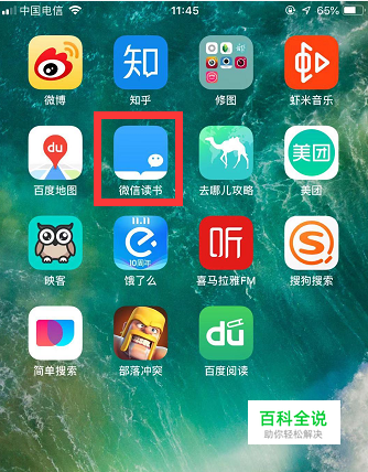 打开手机,找到【微信读书】APP,点击进入APP页面。