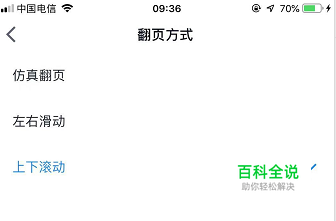 点击进入翻页方式后,发现有三种翻页方式可选。喜欢哪一种就点击哪一种,我们以上下滚动举例,点击上下滚动。