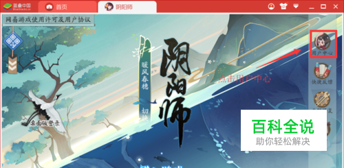 打开阴阳师,点击右上角的用户中心