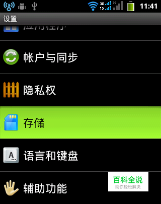 当手机无法识别SD卡时,建议利用手机对SD卡执行格式化操作。打开手机中的“设置”窗口,点击“存储设置”项进入。