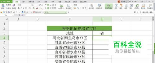 WPS表格如何从地址中快速提取省市区