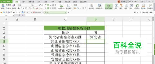 但某些直辖市和自治区则需要使用另外的公式:=LEFT(C12,MIN(FIND({"省","市","区"},C12&"省市区"))),来完成提取操作。
