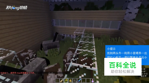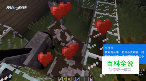 用小麦分别喂养两头“成年牛”,会出现“红心”标志,之后会进行繁殖。