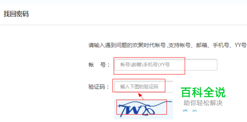这里填写你要找回密码的那个yy账号,在填写验证码。