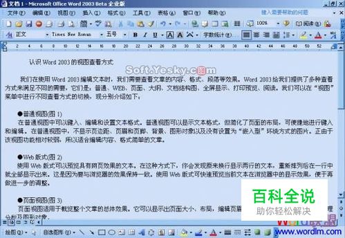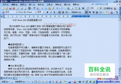 Word2003中“普通视图”和“Web版式视图”介绍