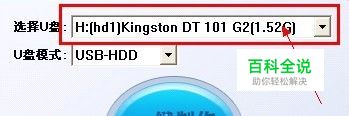 在”选择U盘“下拉列表中,选择要还原的U盘盘符。如图: