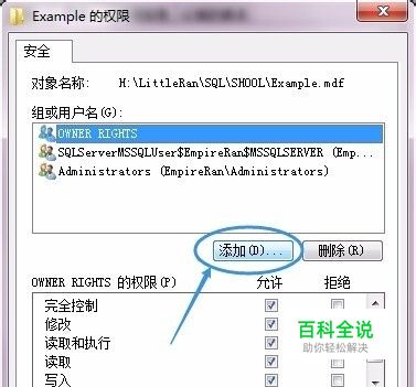 用同样的方法修改“.ldf”的权限
