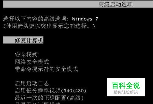 重启电脑,然后按F8键进入系统高级安全选项,如下图: