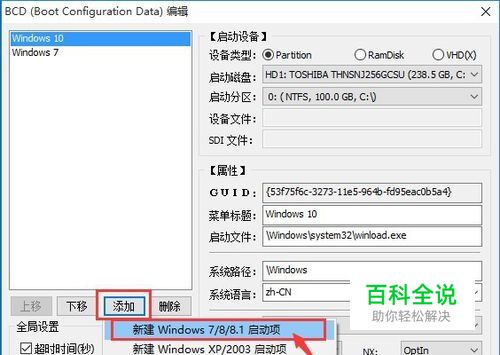 进入BCD编辑,点击“添加”---“新建Windows 7/8/8.1启动项”;