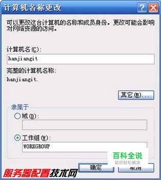 第1步,右键单击“我的电脑”,执行“属性”快捷命令,打开“系统属性”对话框。单击“计算机名”标签切换至“计算机名”选项卡,然后单击“更改”按钮,打开“计算机名称更改”对话框。选中“隶属于”区域的“工作组”单选框,并在编辑框中输入任意的工作组名称。单击“确定”按钮,如图2008120509所示。 图2008120509 加入工作组