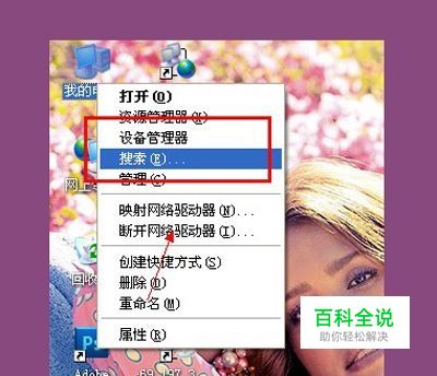 第一步:在电脑上用鼠标右键点击我的电脑,在下拉栏里打开搜索功能。