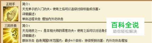 在游戏中天龙门派是个比较不错的门派,但是很多想进入的新手玩家不知道天龙门派的战斗技能是什么,那么就为新手玩家做个指南。