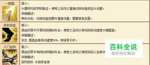 一阳指指法 大理段氏家传绝学,运起周身内力集于指尖,气度雍容,一指克敌。修习之后可以提升天龙弟子的闪避率。