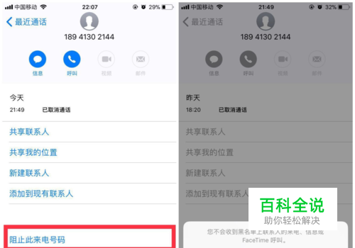 将骚扰号码加入“黑名单”。选中需要阻止的号码,点击“阻止此来电号码-阻止联系人”,就不会再收到此号码发来的骚扰信息。